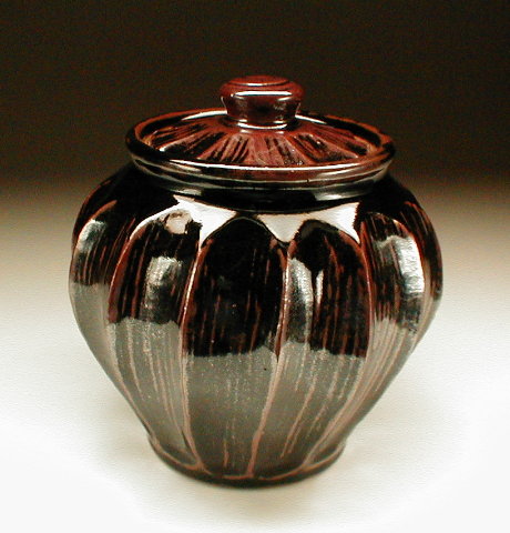 Black Fluted Jar reduction fired stoneware cone 10 with Temoku glaze $200.00