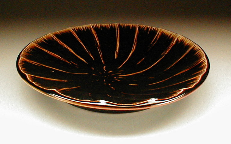 wood fired salt glaze porcelain cone 10 with Temoku glaze